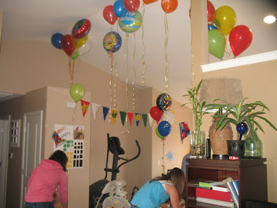 Balloon central. At the end of the party we let some of these balloons go up in the sky and the boys waved and said "bye balloon." It was pretty funny.